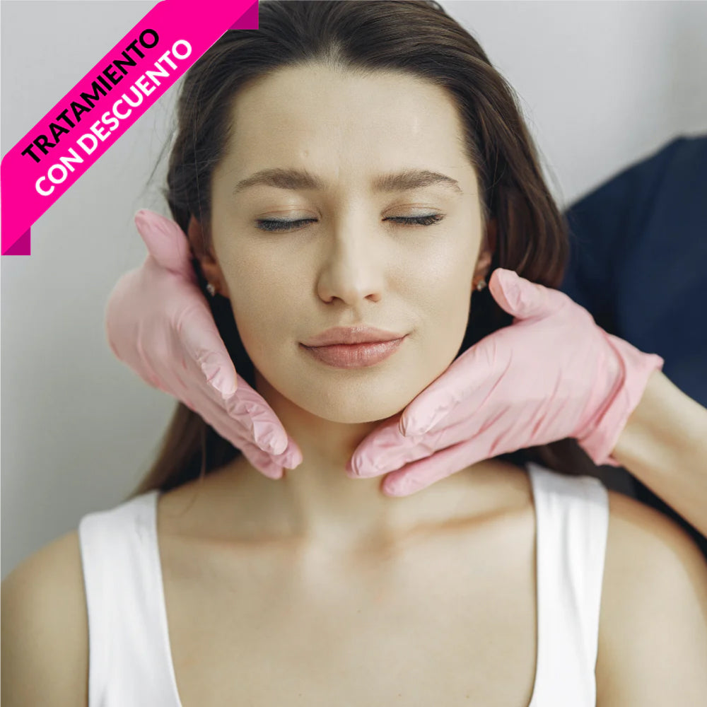 - Reduce la grasa localizada en la papada y disminuye el doble mentón, para lucir un rostro más perfilado, con el borde mandibular más marcado.